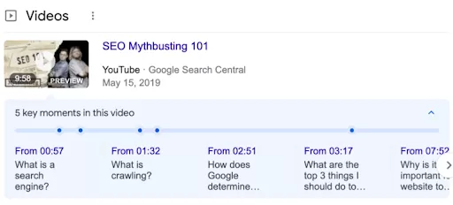 Seek Markup, in contrast to Clip Markup, is the automated way to communicate the timestamps in a video to Google Search. Google understands how the URL structure of a video works to automatically identify and display key moments, using the properties of the related VideoObject. These features are still in their first iteration, and further improvements are expected as trends in SEO keep evolving