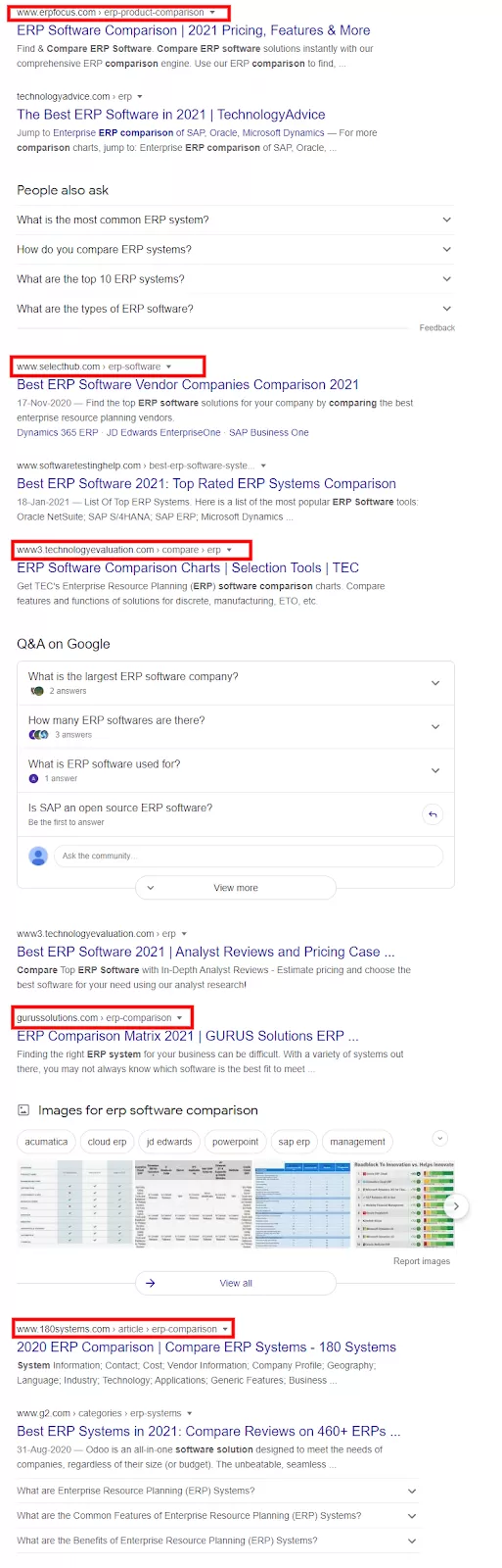 This means, if you have a website that sells ERP software and if you want to rank for this search term, optimizing a product page for these keywords might not work well. On the other hand, creating an exhaustive guide about ERP software will definitely improve your chances of showing up on the first page of SERPs.