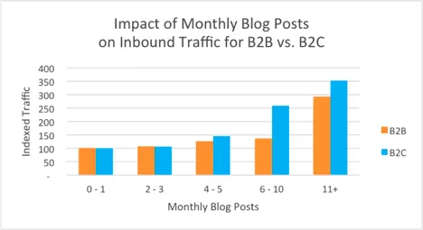 Brands that publish more than 16 blog posts per month receive almost 3.5x more traffic than those that publish 0-4 posts in a month.