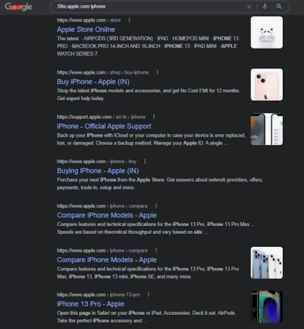 By using the Site: command, you can instruct Google to limit results to pages of a specific website. Here’s an example: