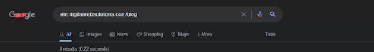 We have well over 8 pages dedicated to our blog. Meaning, there are a few that are not being indexed. All we need to do now is check our own database and compare it with the results shown by Google. Then, we can find the non-indexed pages and take steps to get them indexed.