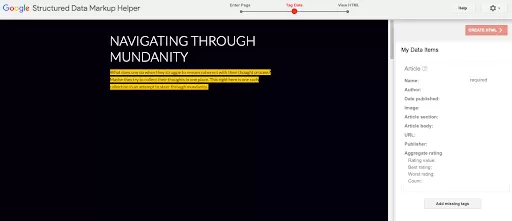 Step 5: Create an HTML. The microdata will be visible in the areas that you have selected for markup.