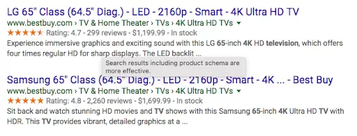 This schema markup provides useful product information to the buyer without the need to put in tedious search efforts.