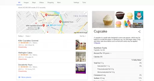Here, we get the top three results for our search query where structured data is present in the source code of the particular web page. It is noteworthy that the type of markup or structured data changes how the content is displayed in search results. In case the format isn’t a recipe, we would get a different style.