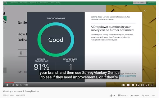 While the video is a little unconventional since it is over two minutes long, it does a great job of showing SurveyMonkey in action. The best thing about this video (in my opinion) is that it doesn’t miss out on mentioning any of the important features of SurveyMonkey.