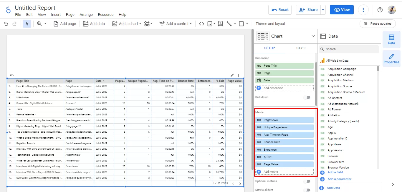 Now you have all the Behavior data with Bounce Rate in a proper format. With this data, you can recreate Google Universal Analytics data in Google Data Studio.