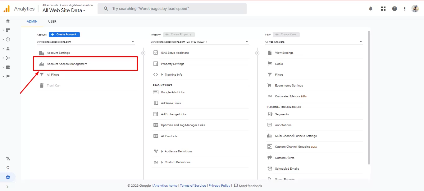 Once you enter into the admin panel, you will see a lot of settings that you need to click on Account Access Management and click it.