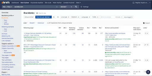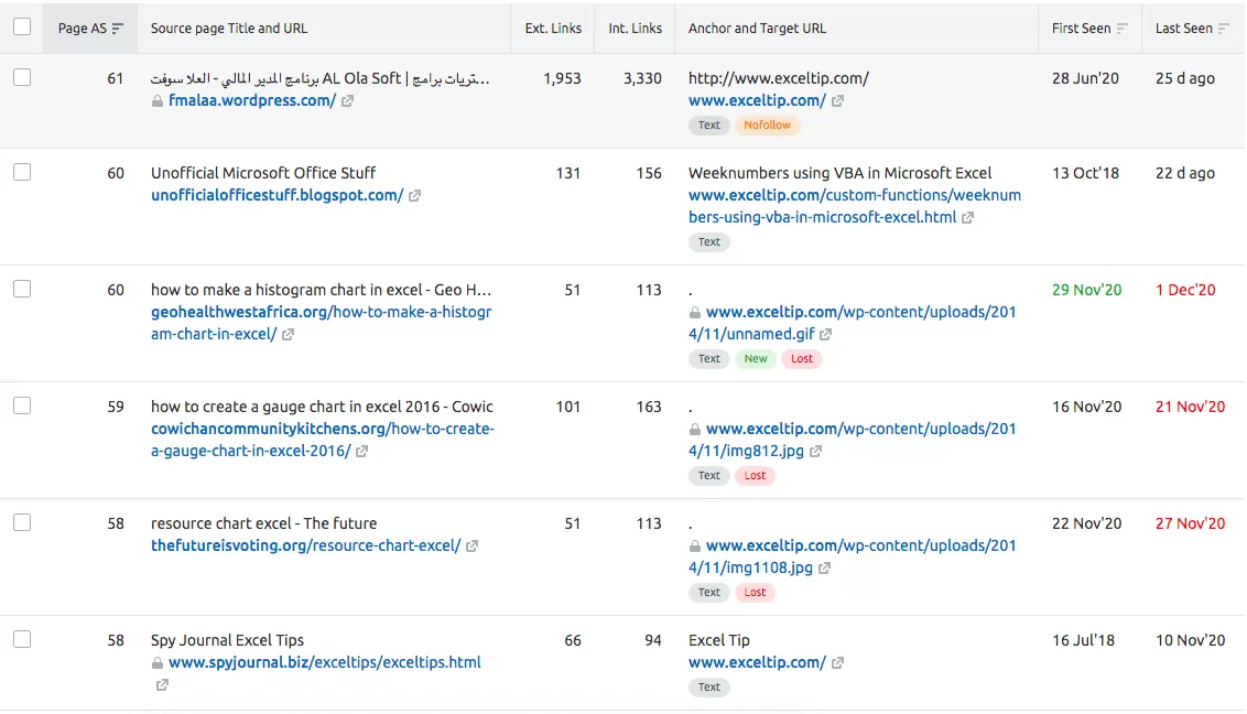 Exceltip.com’s website had a relatively large backlink profile, so it was very time consuming to do a full in-depth link analysis.