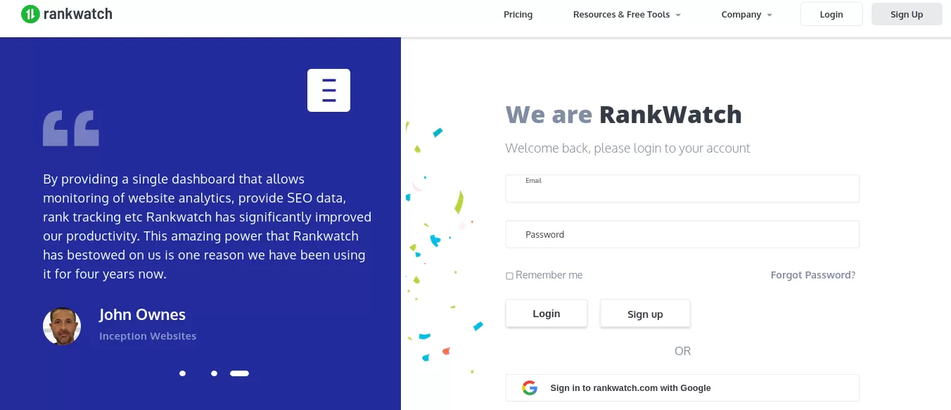 Being able to integrate your rank tracker with your existing ERP system can help you pull ranking reports, deliverables, communication, and invoices into one centralized platform. - Overview of RankWatch tool available for rank tracking