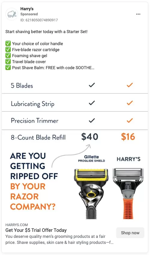 Just like Harry’s Shaving company did with their “ripper” of an ad copy.