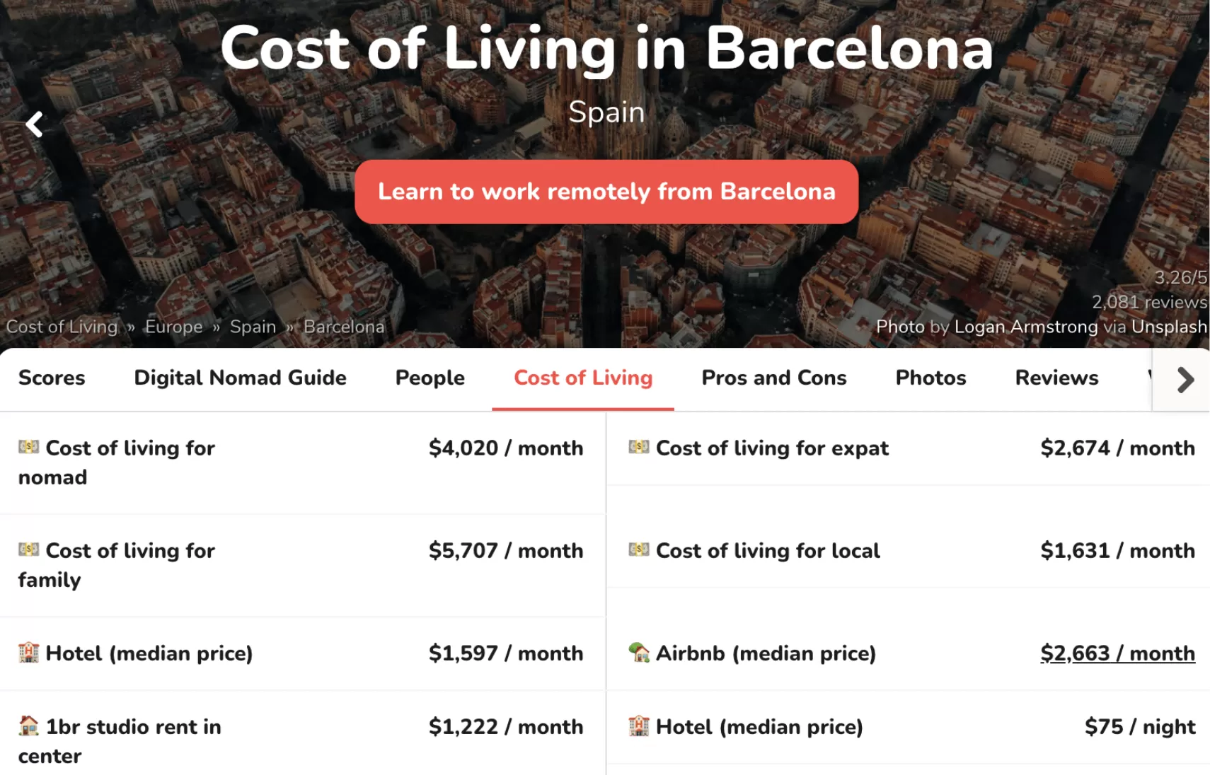 Each city on NomadList follows the same template. Data on each city auto-generates unique pages about the city.