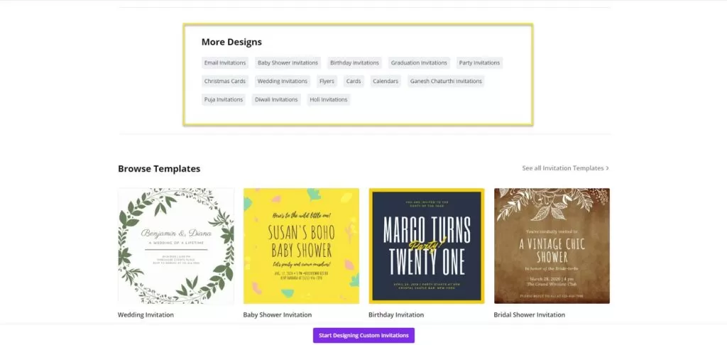 Canva’s site is structured with parent and child pages. The parent pages, like “Invitations,” lead users to design custom invitations. Scrolling down, users find links to child pages that offer specific designs, such as wedding or graduation invitations. This structure enhances semantic relevance for target keywords.