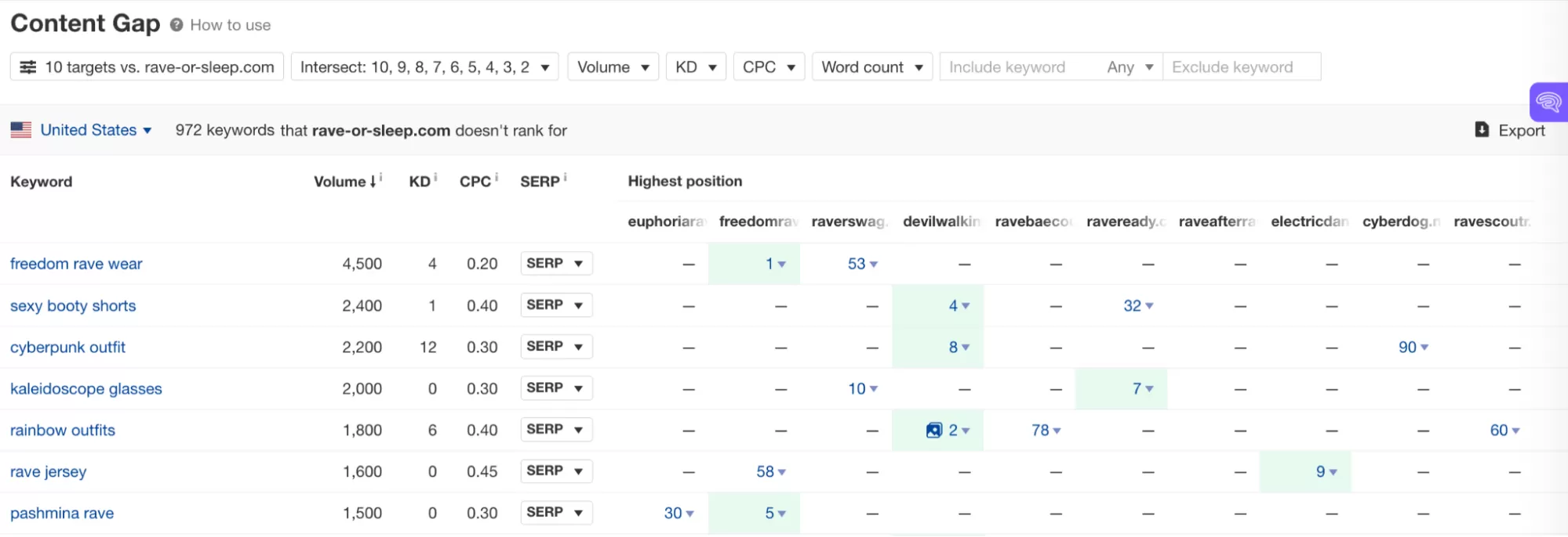 Competitive intelligence is paramount. We employed an in-depth competitor analysis to understand the keywords driving traffic to rival sites. Doing so gave us insights into potential opportunities for Rave or Sleep and helped refine our list of targeted keywords.