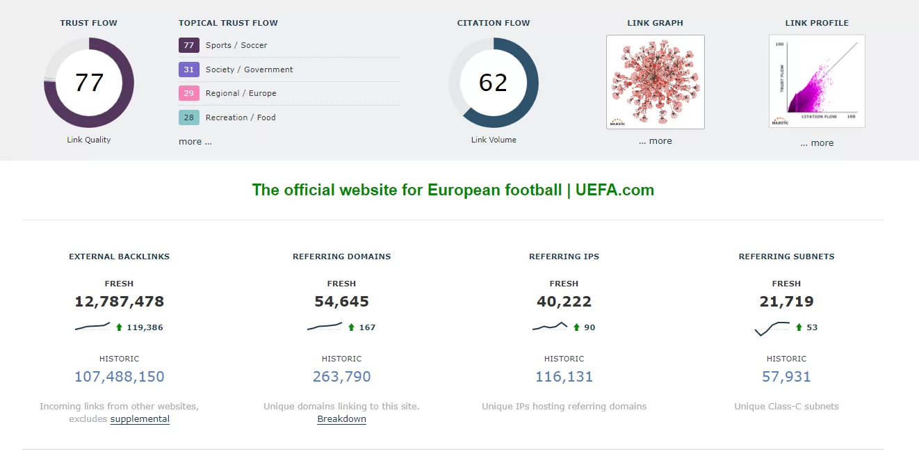 However, its real exceptional capabilities lie in analyzing backlink profiles. Home to the Trust Flow and Citation Flow metrics, Majestic SEO, will tell you everything you need to know about the links pointing to your website. Another noteworthy exclusive feature offered by Majestic SEO is Link Context. Simply enter any link into the tool, and it will tell you whether the link is an editorial link or a part of a directory. The Link Context feature also reports on a number of other factors, such as the nature and format of the content surrounding the incoming link, the estimated SERP position of the linking page, and even information about the other links on the page.