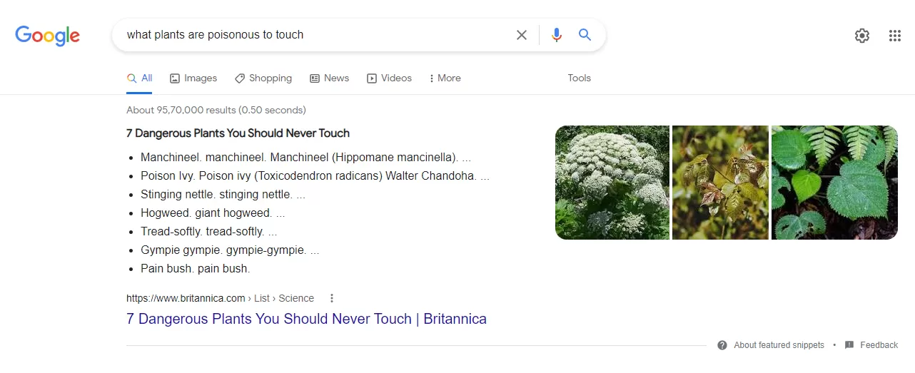 A screenshot from Google SERPs is shown below, demonstrating how images can aid written content in better illustrating a point.