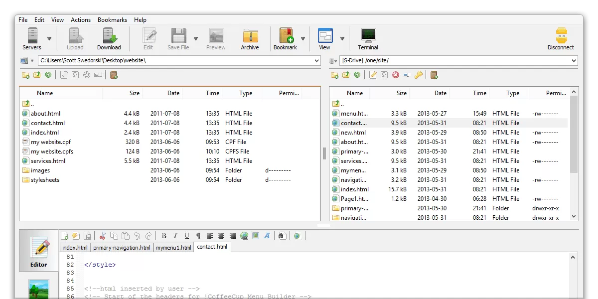 It also offers a really capable Synchronize feature that allows you to synchronize all files between a local and remote folder or server.
