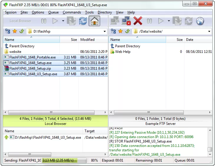 - FlashFXP also offers a bunch of advanced security features like SSH transfers and password protection.