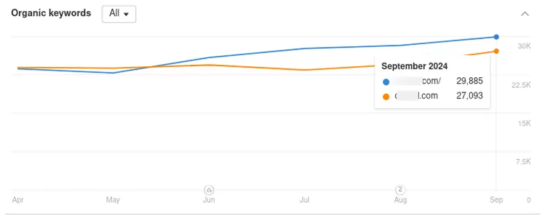 The client saw a 14.4% growth in the number of keywords ranked, rising from 23,683 to 27,093. This improvement allowed them to capture more organic traffic and expand their visibility across a wider set of keywords.