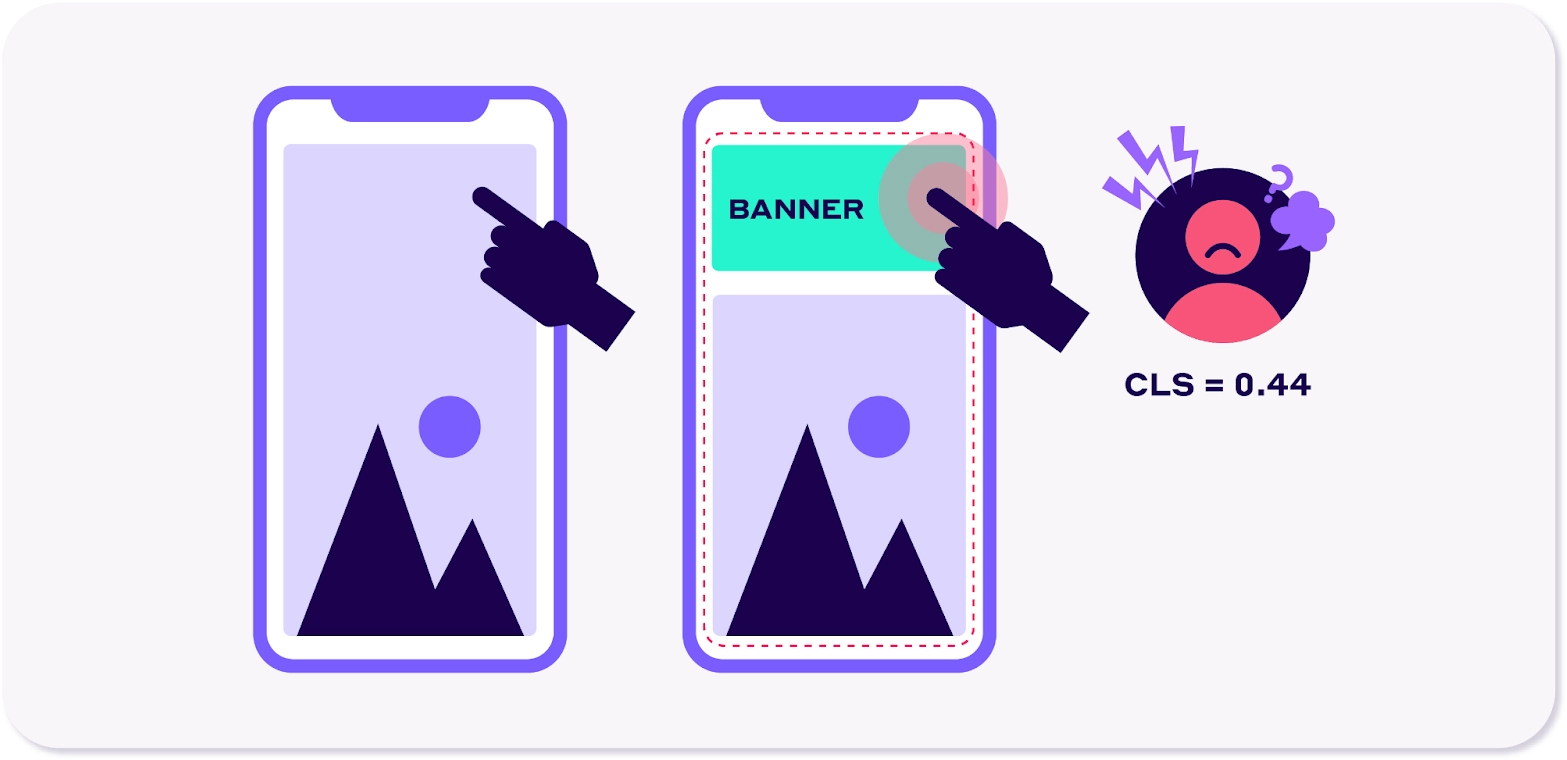 Cumulative layout shift (CLS) is when the elements of a web page shift when it is being downloaded or rendered by a user. The unexpected movement of a web page’s content can occur when the resources load in an unsynchronized manner. It can also happen when the DOM elements are added to the existing page’s content on a dynamic basis.