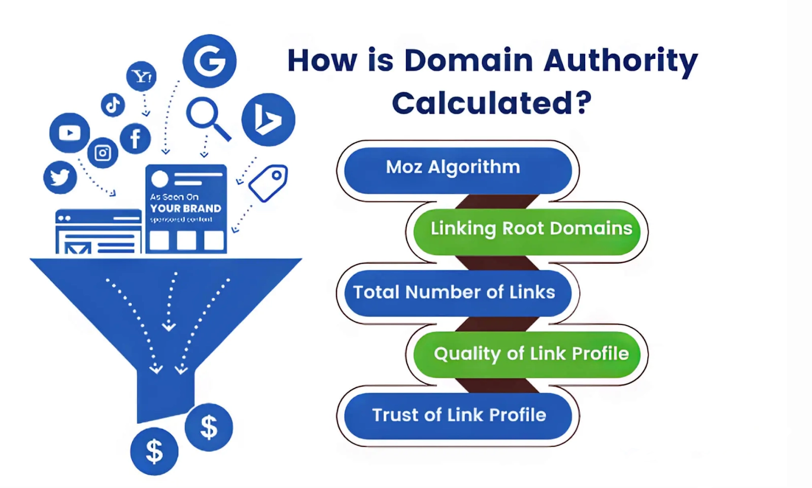 Even though DA is not an official ranking factor for websites, the elements influencing DA are aligned with what makes a website favorable in Google's eyes. These ranking factors include the number and quality of backlinks leading to the site and the overall quality of the site’s content. A business with a higher authority score is seen as more credible and authoritative compared to competitors with lower Domain Authority scores, much like how a store on a busy street corner is more visible than one hidden away in an alley. For businesses and marketers, understanding and improving your website’s Domain Authority means you’re tuning your website to the characteristics of sites that tend to rank well. This can lead to organic growth in search traffic and an improved online presence, making DA a valuable aspect of SEO strategy and digital marketing.How Is Domain Authority Calculated?