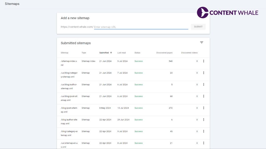 - Enter the URL of your sitemap in the “Add a new sitemap” field and click “Submit.”